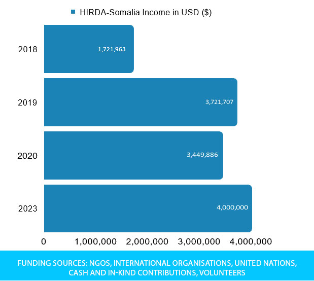 UNICEF is the main source of funding for HIRDA–Somalia’s activities. HIRDA-Somalia is supported by various United Nations agencies, including UNOCHA and WFP, along with international NGOs such as Africa Education Trust and Oxfam. Additionally, we recieve funding through donations from the Western Diaspora community.