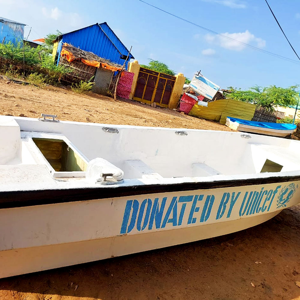 HIRDA, a humanitarian organization in partnership with UNICEF, delivered a new boat to the flood-affected Burdhubo district in the Gedo Region. The boat, with a capacity for 40 people and one ton of food, aims to facilitate essential transportation and aid distribution in the aftermath of the floods caused by the Jubba River.